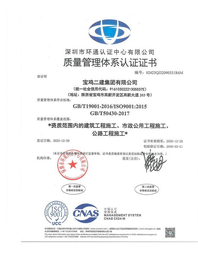 質(zhì)量管理體系證書