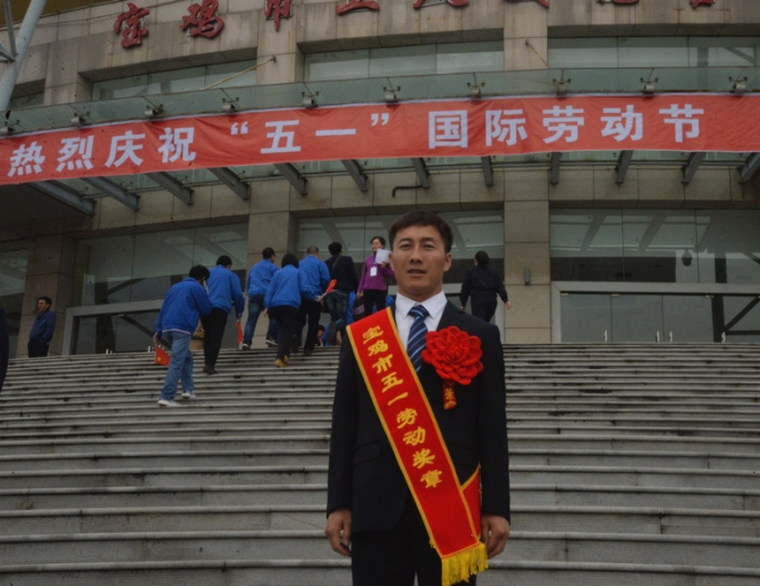 4月30日,寶雞市勞動者之歌暨慶?!拔逡弧眹H勞動節(jié)大會勝利召開,公司劉延強同志被授予“寶雞市五一勞動獎章”光榮稱號,公司在總部辦公樓前舉行了簡樸隆重的歡迎儀式。公司副董事長、總經(jīng)理胥立,黨委書記景旭東,工會主席王建成等出席儀式,總部全體、寶雞文化藝術中心項目部管理人員參加。