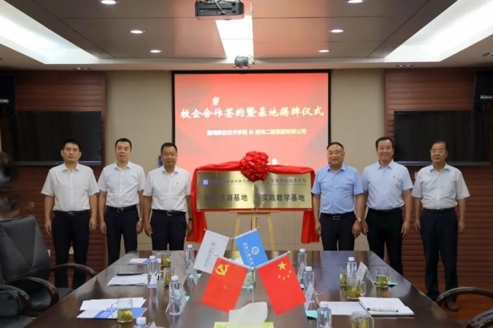 寶雞職業(yè)技術學院黨委書記蘇永興與公司黨委書記、董事長胥立共同為“寶雞職業(yè)技術學院實踐教學基地” “寶雞二建集團有限公司教育培訓基地”揭牌。