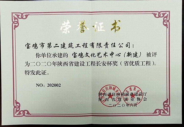 2020年陜西省建設(shè)工程長安杯獎(寶雞文化藝術(shù)中心)