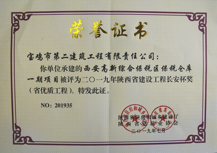 2019年陜西省建設(shè)工程長安杯獎(西安高新綜合保稅區(qū)保稅倉庫一期項目)