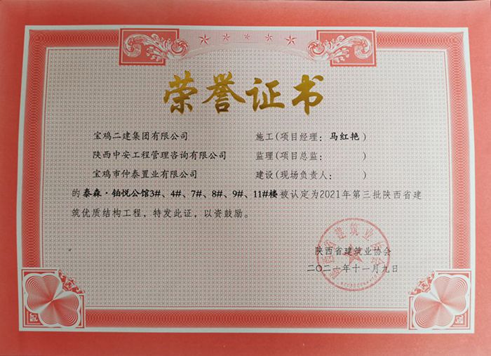 2021年度陜西省建筑優(yōu)質結構工程(泰森 ? 鉑悅公館3#、4#、7#、8#、9#、11#樓)