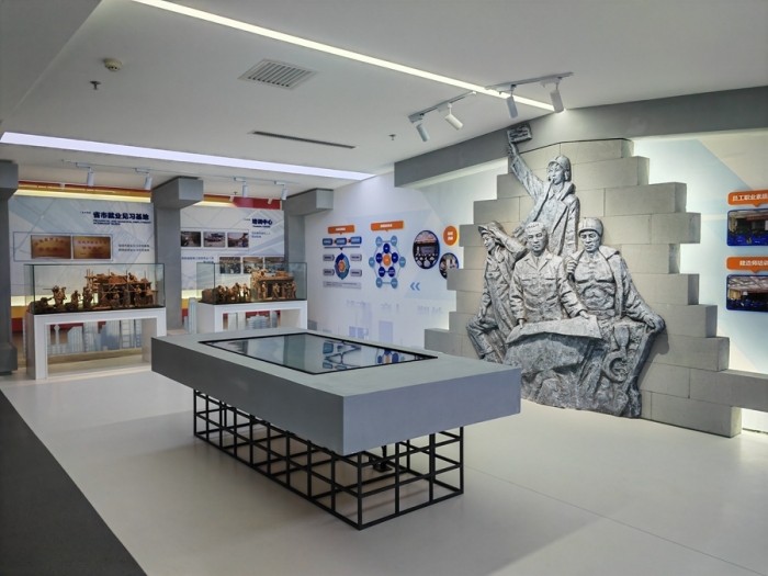 企業(yè)展覽館總面積516㎡,共分為四個展示單元,分別是:第一單元平地起高樓,主要展示集團公司歷史沿革;第二單元風(fēng)雨筑輝煌,主要展示集團公司壯闊征程;第三單元黨建強引領(lǐng),主要展示黨建、企業(yè)文化;第四單元公司榮譽展示;通過實物、展板、沙盤、模型、視屏、雕塑等表現(xiàn)手法,以圖、文、影、聲并茂的形式全方位呈現(xiàn)集團公司走過的艱辛之路、創(chuàng)新之路、豪邁之路。