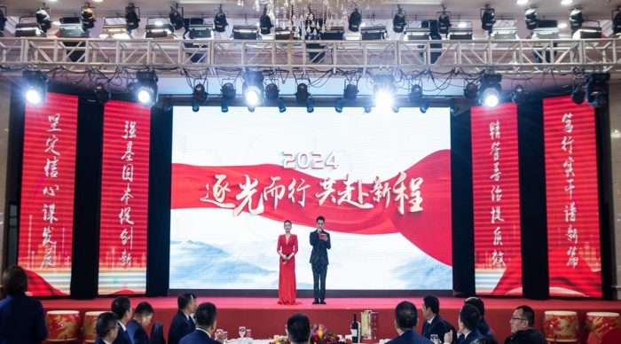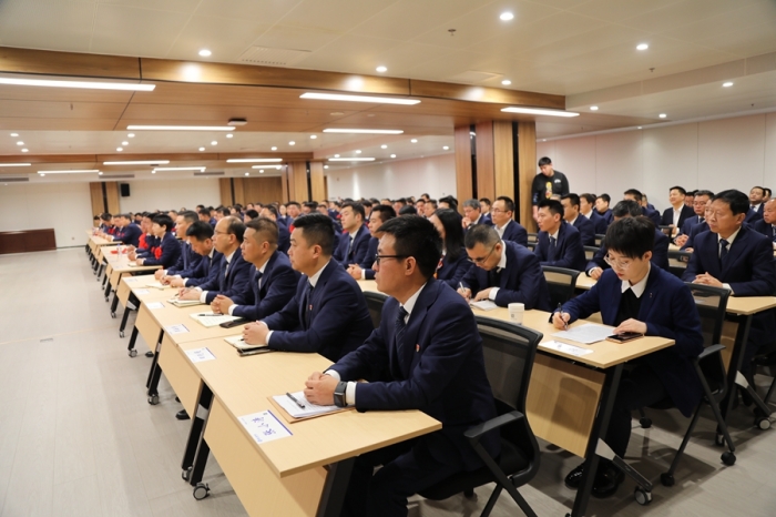 集團(tuán)公司高層領(lǐng)導(dǎo)、中級管理人員、受表彰獎(jiǎng)勵(lì)的優(yōu)秀單位和個(gè)人、總部全體及2023年度新員工,共計(jì)300余人參加了會議。副總經(jīng)理、總會計(jì)師嚴(yán)海軍主持會議。