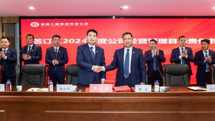 黨委書記、董事長胥立與黨委副書記、總經(jīng)理?xiàng)罱胶炗啞?024年度經(jīng)營管理目標(biāo)責(zé)任書》。