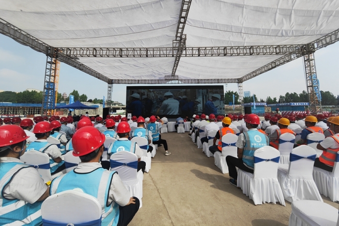 集團(tuán)公司黨委副書記、總經(jīng)理?xiàng)罱?,副總?jīng)理、總會(huì)計(jì)師嚴(yán)海軍,副總經(jīng)理申小龍出席儀式。集團(tuán)公司總部相關(guān)部門,寶雞片區(qū)各項(xiàng)目部負(fù)責(zé)人、專職安全管理人員及現(xiàn)場(chǎng)施工人員共計(jì)150余人參加了本次活動(dòng),儀式由副總工程師、工程管理部經(jīng)理郭為群主持。