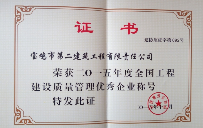 2015年度全國工程建設(shè)質(zhì)量管理優(yōu)秀企業(yè)